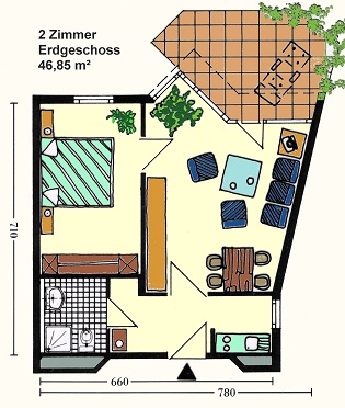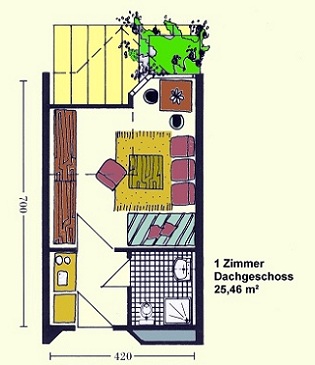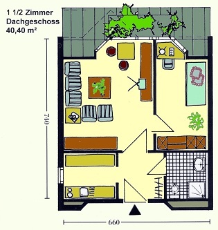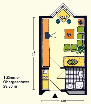 1½ -Zimmer-Appartements (6 Whg.) 2-Zimmer-Appartements (12 Whg.) ![]() Die Ausstattung der Appartements: